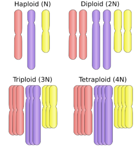 Figure 1 Number of chromosomes in a haploid and diploid cell. Note that triploid and tetraploid are not normal numbers of chromosomes in humans.